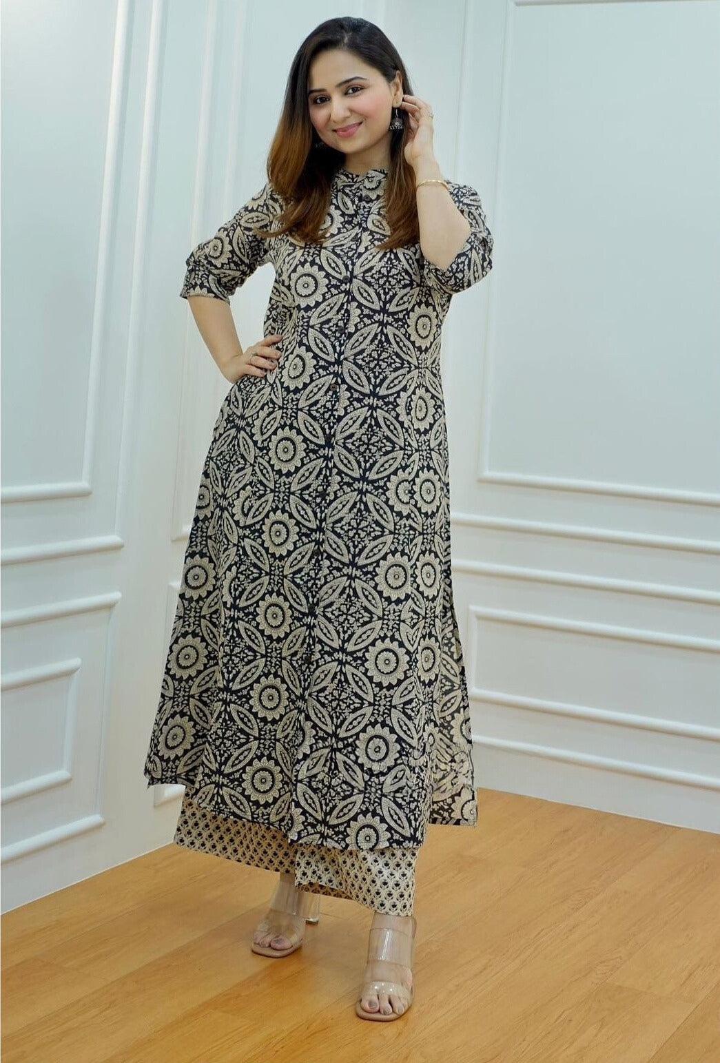 Ethnic Motifs Printed Black Grey Co-Ord Set
