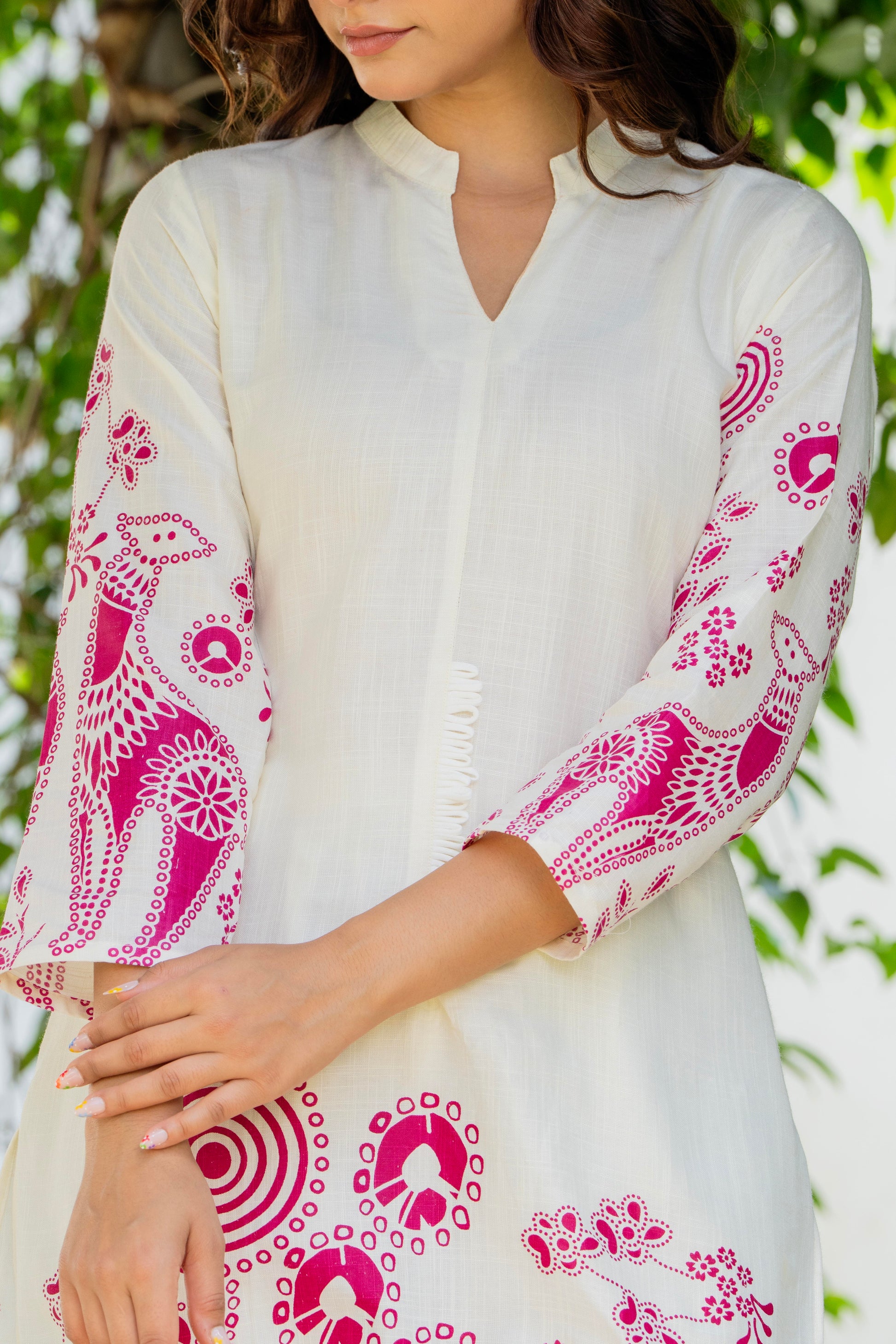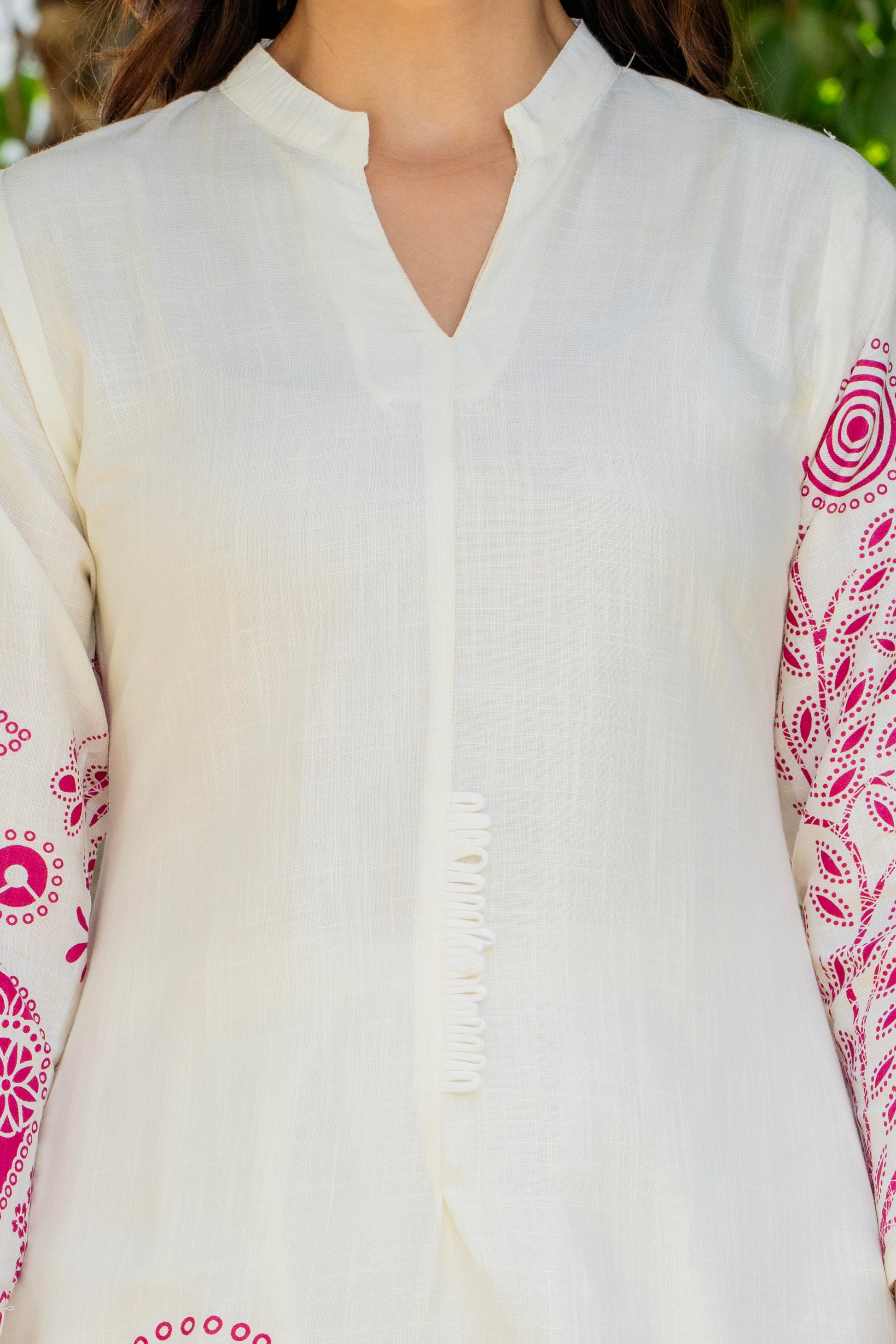 Elevate your casual wardrobe with this Off White Printed Cotton Flex Co-Ord Set, crafted for comfort and style. Made from breathable cotton fabric with a flexible fit, this set ensures ease of movement throughout the day. Its elegant print adds a subtle charm, making it perfect for casual outings or relaxed gatherings. Versatile and lightweight, it pairs effortlessly with accessories to create chic, effortless looks.