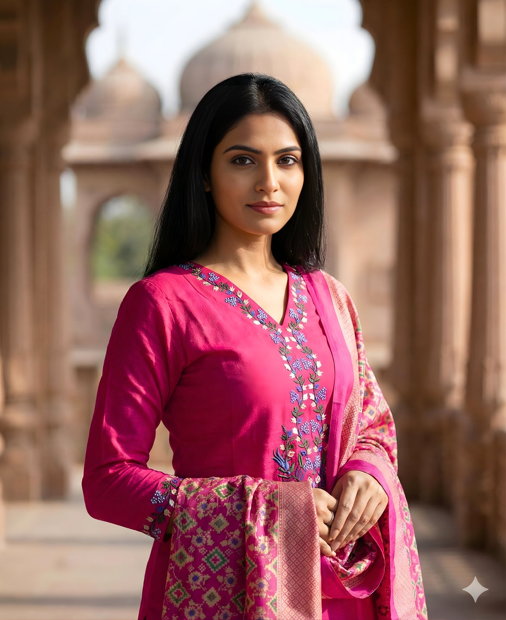 I have been enjoyed doing shopping regarding Pink Embroidered Cotton Kurta and Pant Set with Dupatta? Keep it up and but only only issued regarding my previous dupatta colour should be red but come out pink so just need to extra alert while packing and order .overall I am satisfied with my order